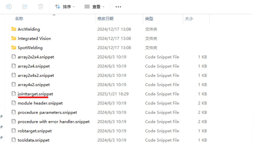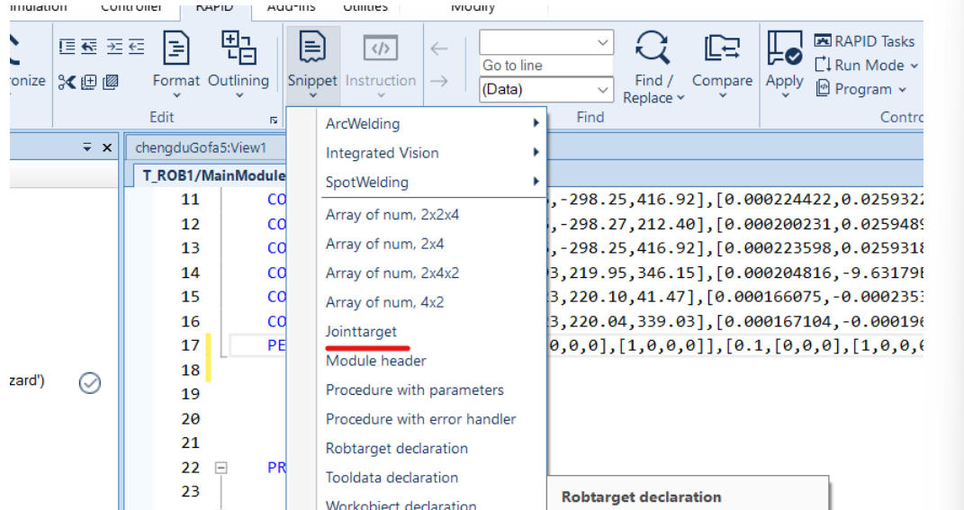 通过以上步骤,可手动创建并使用自定义jointtarget片段,精准控制机器人关节位置,适用于离线编程中固定姿态的复用场景。