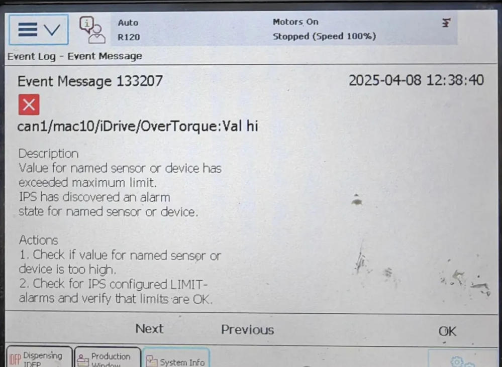 故障:涂胶设备定量缸Doser1 偶发的出现133207故障,故障出现频率越来越高