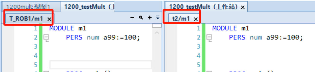例如在两个任务都定义pers num a99,任意任务中修改a99,其余任务的a99也被修改。